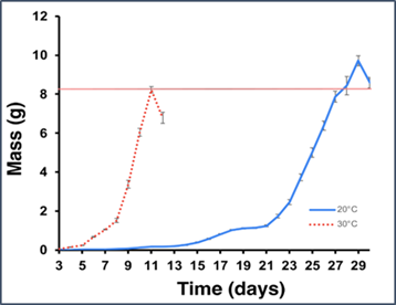 Dr. Suzuki’s lab was able to reaffirm that temperature plays a significant role in Manduca sexta development. At lower temperatures, M. sexta larvae grow more slowly but end up significantly larger. At warmer temperatures, they grow faster but they end up smaller.