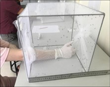 Understanding how repellents work is not well understood, even though they have been in use for many years. Dr. Potter explained how we have been using DEET since its discovery between 1942-1947 when 4,137 chemicals were tested using the arm-in-cage experiment (Figure 3), all with the hope of finding ones to stop mosquitoes from biting. About 361 of these 4,000+ chemicals provided 3+ hours of protection from biting. The arm-in-cage experiment continues to be the top test for insect repellents, both human-made and many natural, although how they work on the mosquitoes has been unknown, until now. In fact, this test continues to be the main driver of the bug sprays you buy today. But how do these “repellents” work? Are they repelling mosquitoes or is there something else that prevents their decision to bite?