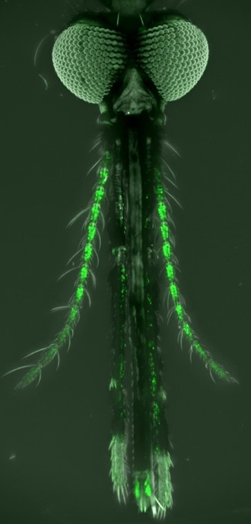 Dr. Potter brought to the UMD Entomology Department news of some strides his lab has made to answer these questions. Mosquitoes have many different odorant receptors, each of which detects different odors. The odorant receptor co-receptor (ORCO) is necessary for the function of most of these odorant receptors, so mosquitoes lacking ORCO can’t effectively detect odor. Dr. Potter and his lab developed a genetic system to label and visualize olfactory receptor neurons (Figure 4). With access to the vital olfactory neurons, they could determine how repellents affect a mosquito's sense of smell. They investigated both human-made and natural “repellents” on the market today and how each worked. Human-made includes DEET (N, N-diethyl-meta-toluamide), IR3535 (Merck) and Picaridin (Bayer) while natural products include oil of lemon eucalyptus (active ingredient p-Menthane-3,8-diol/PMD) and lemongrass oil.