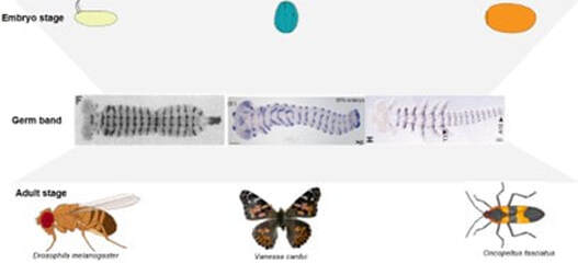 Despite the great diversity of adult insects, many insect embryos look similar (Figure 2). While some would assume that this similarity would extend to the genes kickstarting embryogenesis, Dr. Gutiérrez Ramos’s research challenges this assumption by investigating the differences in the pair-rule genes between species. Pair-rule genes establish the alternate segment primordia in insect embryos.
